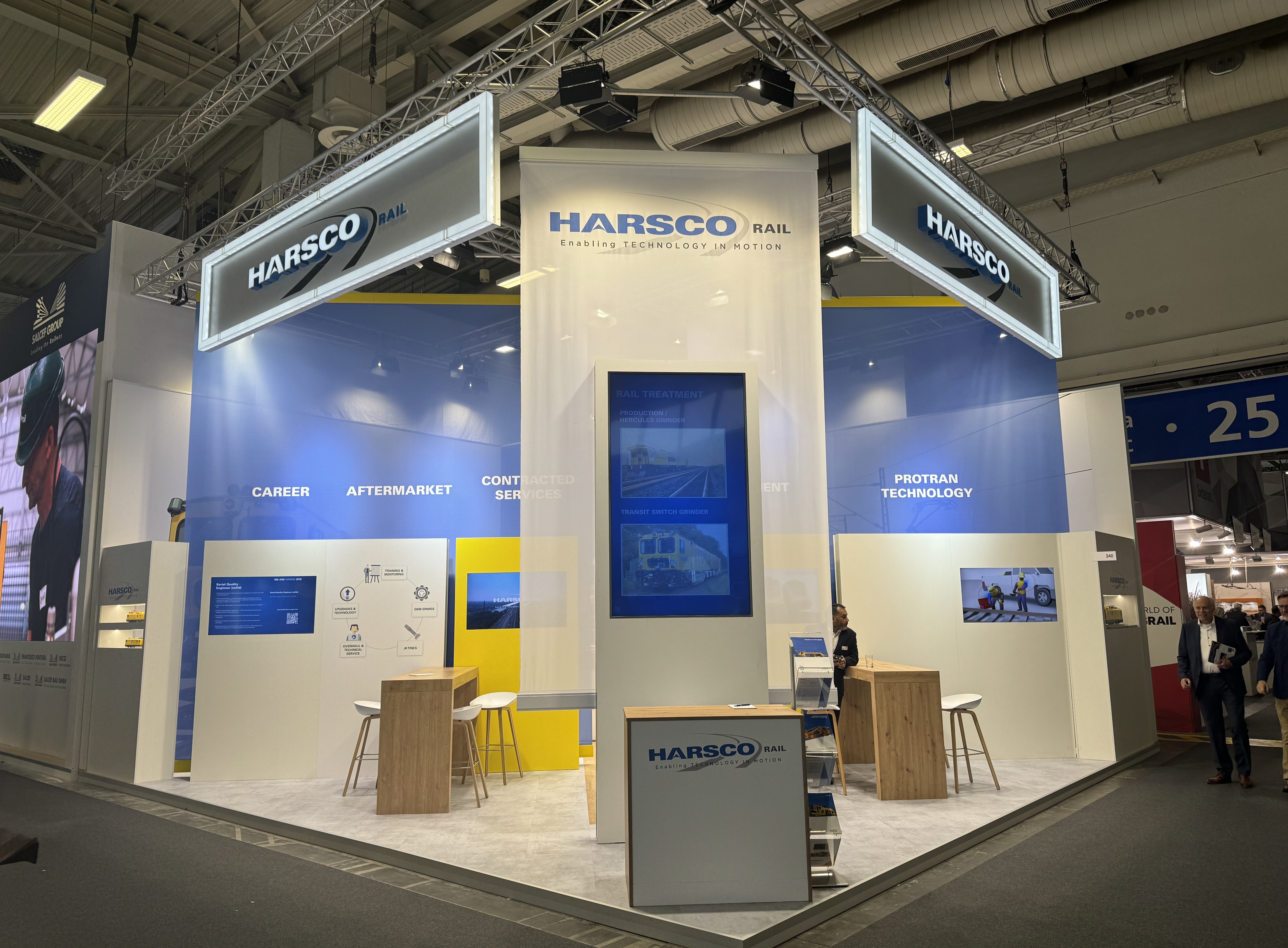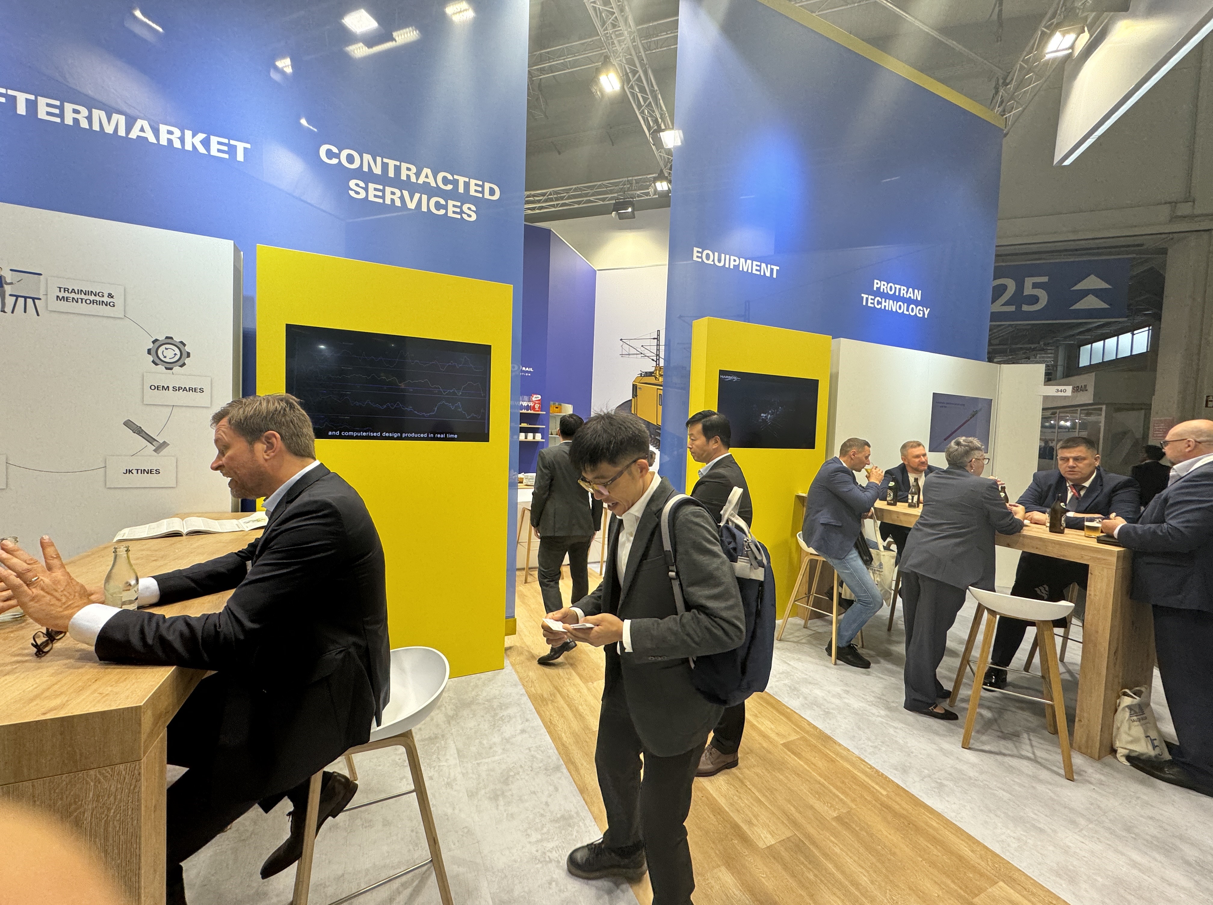 哈斯科鐵路公司作為全球軌道養(yǎng)護(hù)和建設(shè)行業(yè)的領(lǐng)導(dǎo)者,也應(yīng)邀參加了此次盛會。,哈斯科展位以現(xiàn)代簡約風(fēng)格為主,結(jié)合鐵路元素的裝飾,展示了公司最新的產(chǎn)品和技術(shù),此外還專門設(shè)置了茶歇區(qū),為參觀者提供舒適的休息和交流空間。