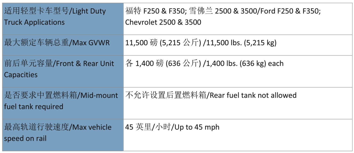 哈斯科鐵路公司生產(chǎn)的0307A輕型公鐵兩用車適用于滿足哈斯科鐵路公司推薦規(guī)格的輕型卡車及 SUV,使其能夠應用于鐵路,既能在公路上行駛也能在鐵路上行駛。0307A輕型公鐵兩用車設計堅 固緊奏可提供軌道作業(yè)所需的持久性。它采用了橡膠懸掛、鋼軌電子絕緣和機械式安全銷。